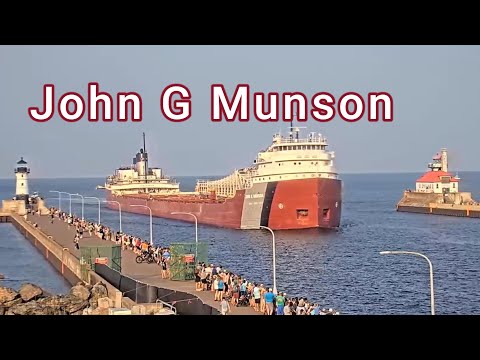 John G Munson arrived in Duluth this evening loaded with limestone and serenading hundreds of summer visitors with multiple horn blasts.